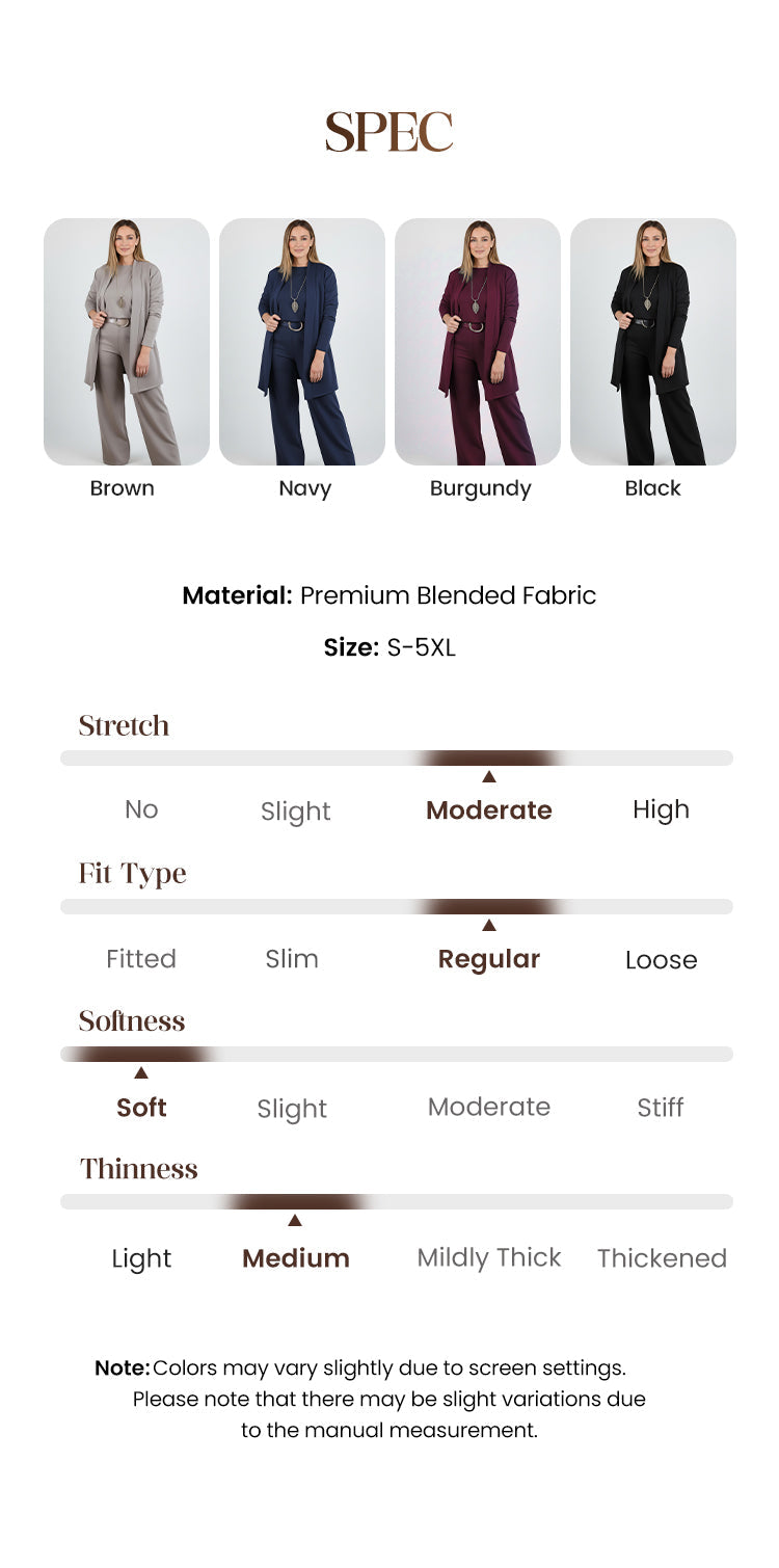 Elegantes 3-teiliges Set aus Longline-Cardigan, Top und Hose