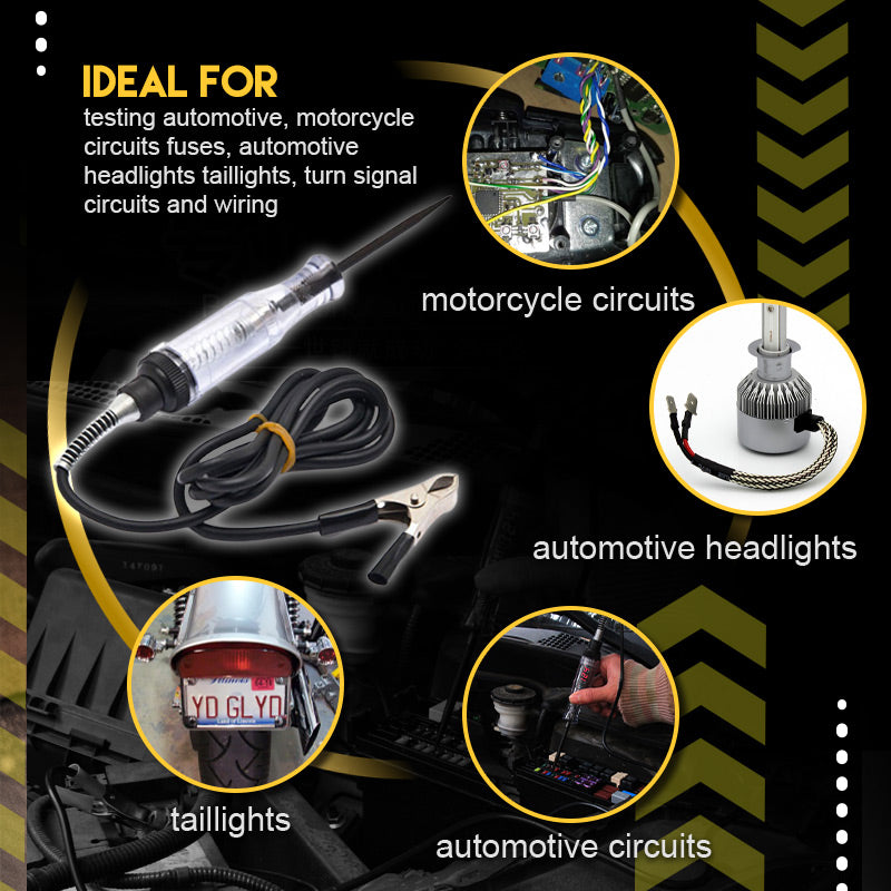 Ein Gerät, das häufig zum Prüfen von Stromkreisen im Bereich von 3-24V verwendet wird. Ideal zum Testen von Schaltkreisen, Sicherungen, Scheinwerfern, Rückleuchten, Blinkerschaltungen und der Verkabelung in Autos und Motorrädern.