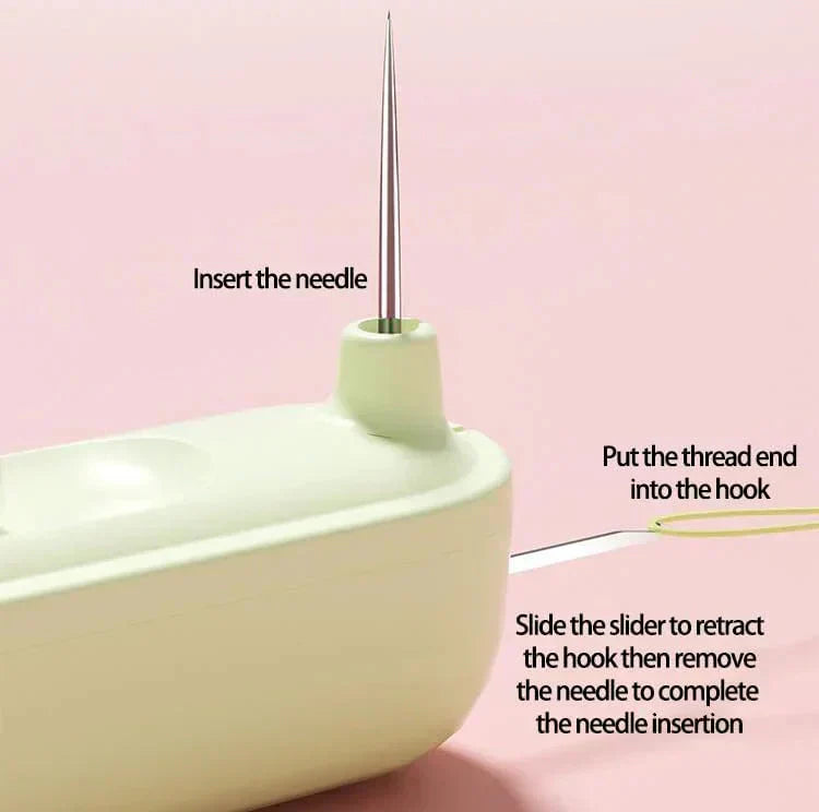 Mit einem neuesten verbesserten Einfädelmechanismus macht dieses Werkzeug das Einfädeln müheloser als je zuvor. Einfach die Nadel einführen, den Faden einhaken und zurückziehen – das Einfädeln ist mühelos abgeschlossen. Perfekt für diejenigen, die Zeit sparen und Frustration vermeiden möchten.